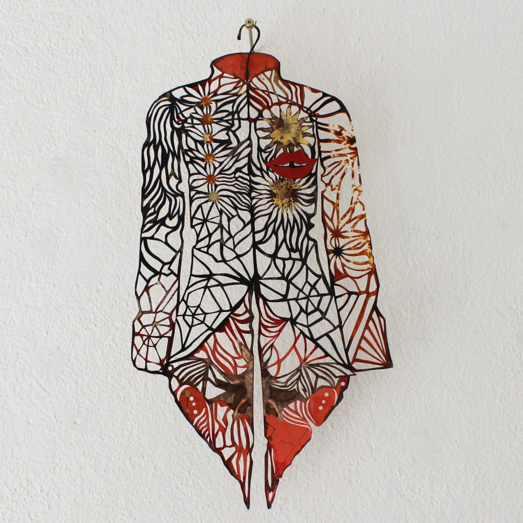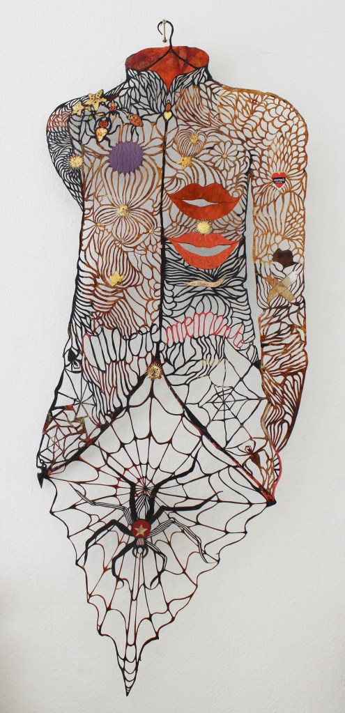 La robe d’insectes. Paper-cut sur papiers collés. 1m60.